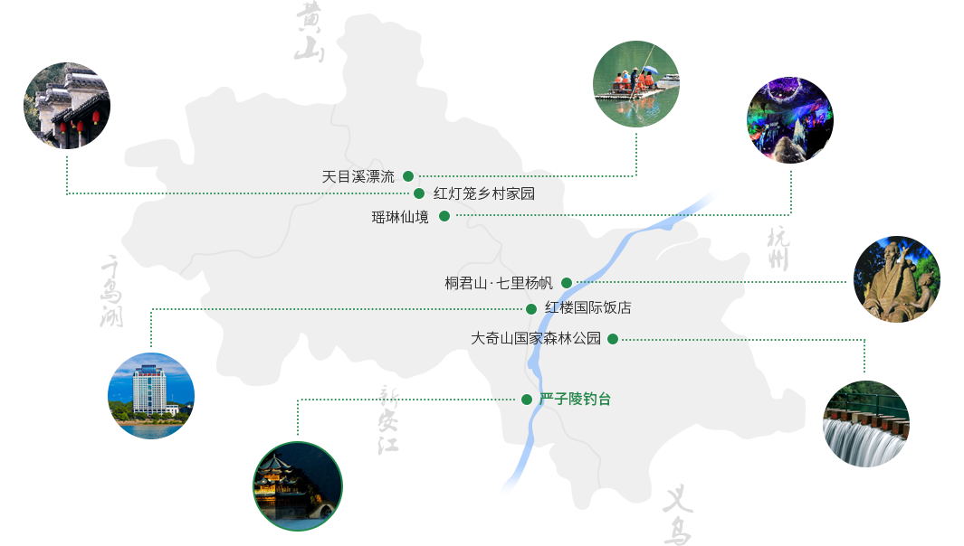 桐廬,地處國家級風景名勝區(qū)“富春江—新安江—千島湖”的中心地段。境內(nèi),山水旅游資源得天獨厚,山青水秀,洞奇石美,古跡悠悠,勝跡處處。“瀟灑桐廬郡”、“流水帶花香”便是流傳了千年的吟詠。桐廬,處處是山水詩,寸寸是寫意畫, 從1600多年前的南北朝到清末,就有1000多名詩人到此盤桓后留下過3000多首詩文佳篇。